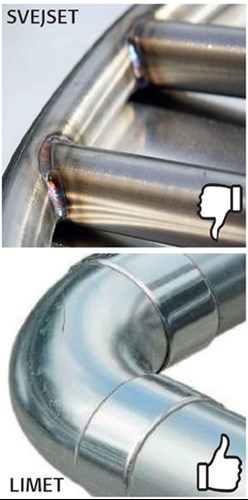 - Ingen anløbning som kan ske ved svejsning.