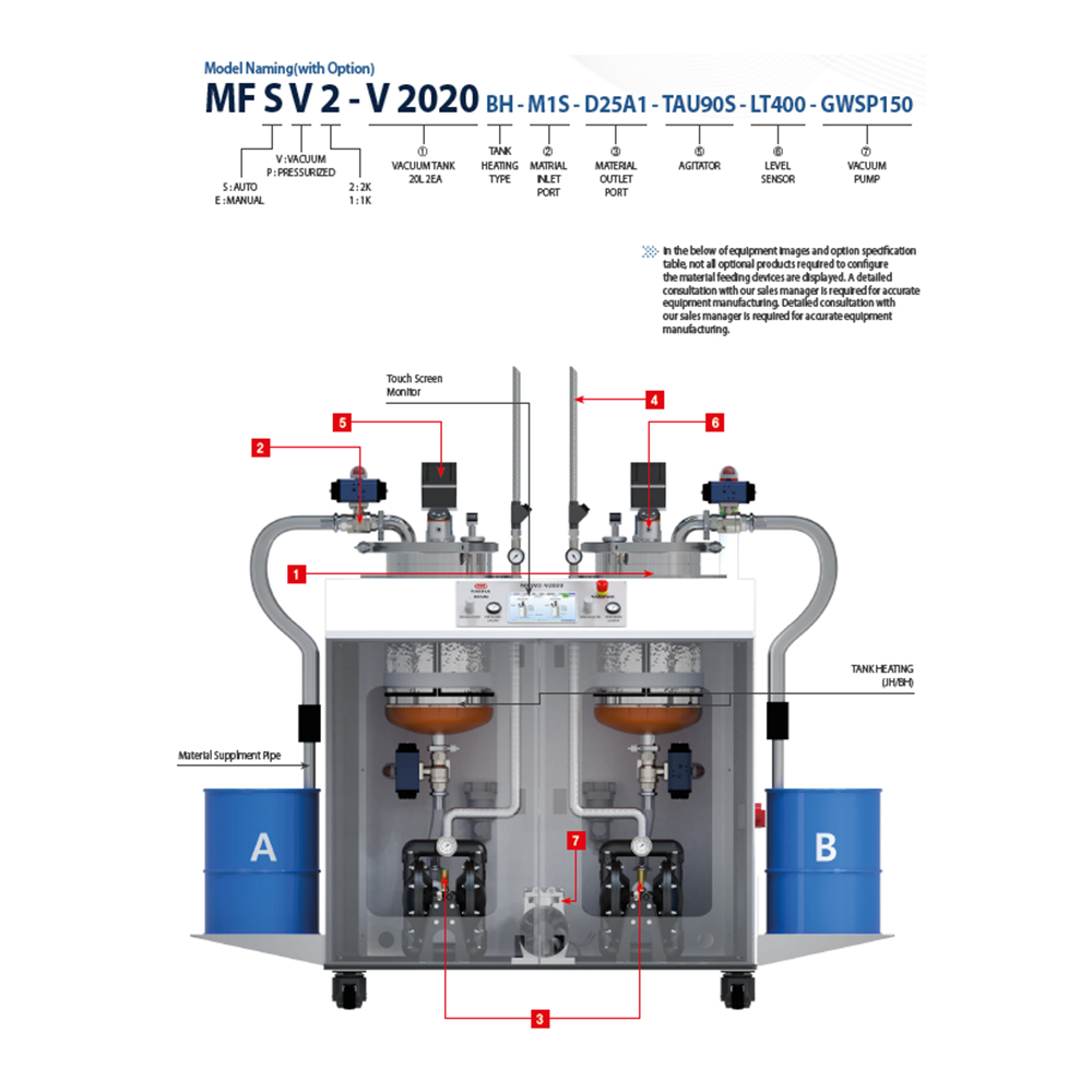 MFS er et automatisk materialeforsyningssystem (material feeding system) til transport af 2-komponente materialer. Forsyningssystemet gør det muligt at opretholde en stabil og økonomisk proces i lang tid, fordi det kan levere materiale kontinuerligt og uendeligt vha. én tank pr. materiale. Enheden bruger ikke trykluft.