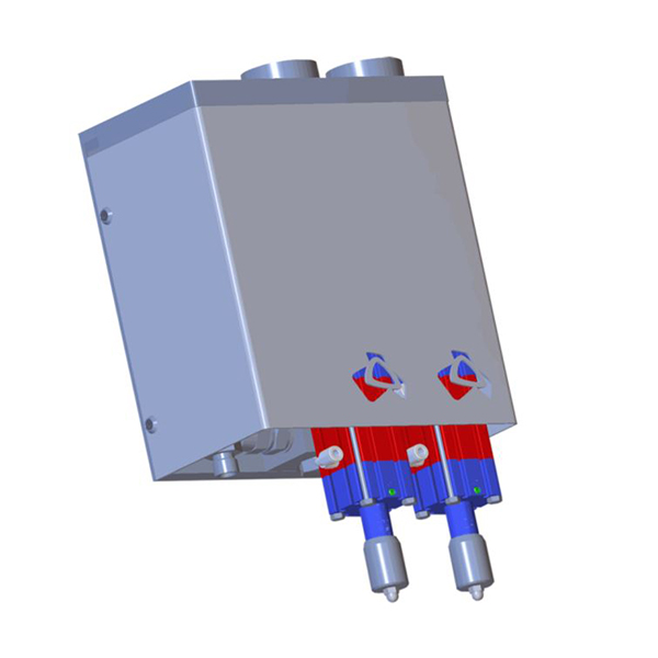 Denne enhed fås med op til 4 individuelt styrede doseringsventiler. Denne kompakte enhed muliggør effektiv dosering af smøremiddel på op til 4 forskellige komponenter uden at skulle skifte dyse.