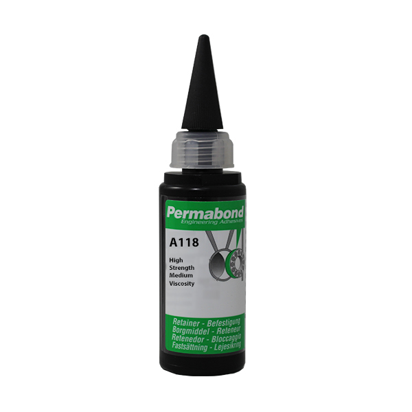 Permabond A118 er en anaerob lim designet til at give en permanent låsning og tætning af lejer, tandhjul, nitter, gevind og andre metalkomponenter. Denne låsevæske udviser en høj styrke, fremragende holdbarhed og modstandsdygtighed over for vibrationer, træthed og gnidningskorrosion. Derfor kan limen i mange tilfælde eliminere behov for mekanisk sammenføjning.