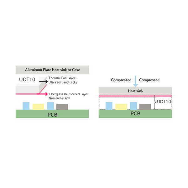 Varmeledningsevne 1,0 W/mK, tykkelse 0,5 - 10,0 mm, glasfiberforstærket på den ene side