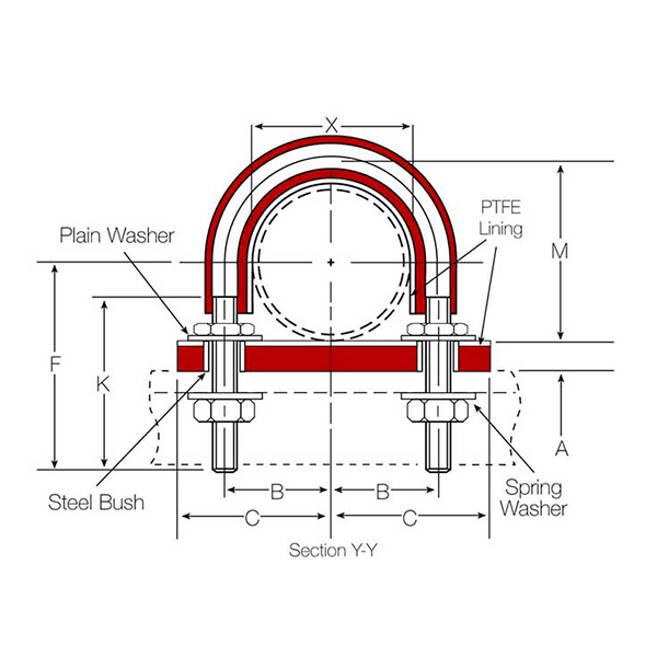 Konstruktionen af TICO Pipe Clamp/Guide rørbøjlerne gør, at røret bliver både støttet og fastholdt med mulighed for større aksial bevægelse, samt beskytter mod klemmeskader på røret.