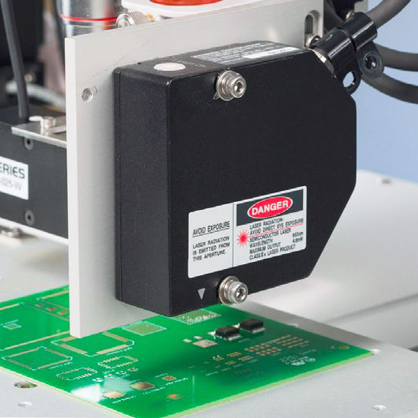 XYZ-doseringsrobotten er også udstyret med lasersensorer, der registrerer højdevariationer på overfladen af emnet, og korrigerer dispenseringsmængden og forhindrer en ujævn udlægning.