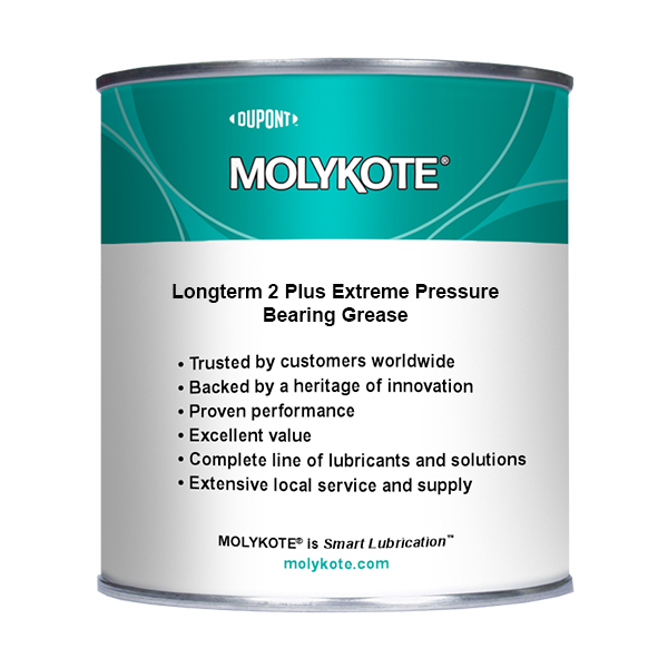 MOLYKOTE Longterm 2 plus er et højtryksbestandig mineraloliebaseret fedt med indhold af molybdænsulfid til meget høje belastninger og langsomme bevægelser på metal/metal applikationer.